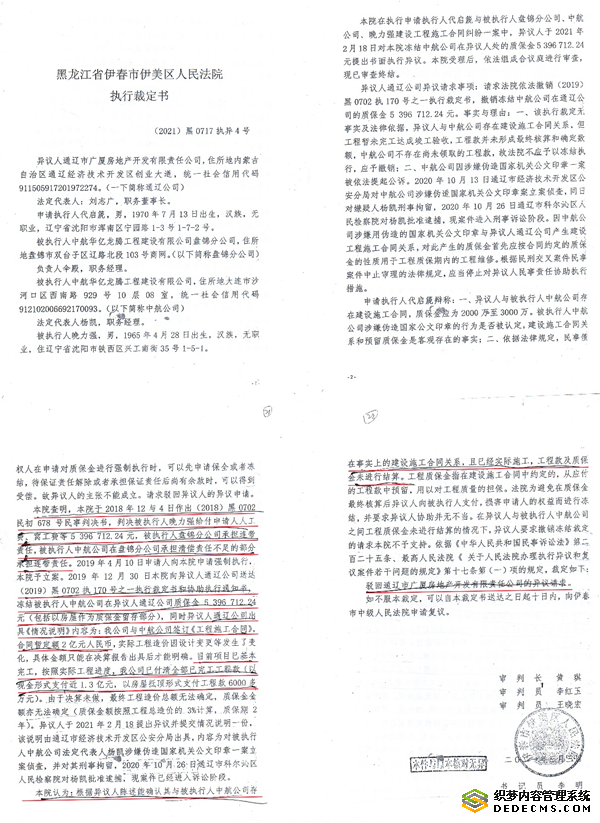 中航华亿尚欠代启篪的民工费、窝工费等费用5396712.24元,已经伊美(春)区法院2018黑0702民初678号民事判决书认定,判决中航华亿承担连带清偿责任。民事判决书生效后,代启篪向法院申请强制执行,2019黑0702执170号执行裁定书查明中航华亿在通辽广厦的质保金5396712.24元并冻结。通辽广厦提出执行异议,被伊美区法院以2021黑0717执异4号和伊春市中级法院2021黑07执复7号裁定书驳回,并确认中航华亿与通辽广厦存在建设施工合同关系,认定中航华亿在通辽广厦的质保金合法存在。