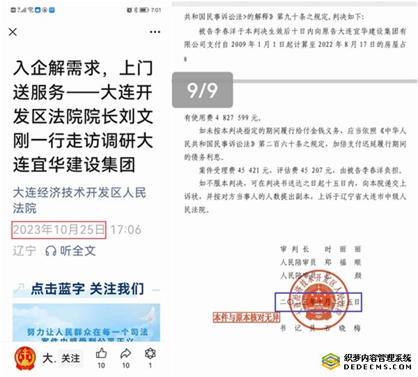 还有更令人匪夷所思的事,就在判决书下达的当日,这家法院的一把院长带队,副院长、此案主审法官及代理律师一行六人来到了苏会长的企业进行调研,此行为还进行了公开报道,所以有内部人士说,他们这哪里是调研,明明是去“讨赏”去了,假如法院出去调研,那开发区的企业比苏会长大的知名度高的更急需法院帮助的太多了,还有,苏会长讨要占房钱的主审法官和代理律师也去干嘛?调研哪有他们的事?这也太明目张胆的吧?如果说是巧合,那有谁能相信呢?