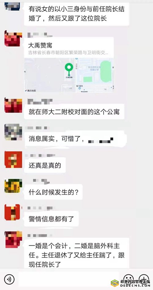 爆料称:“女的是护理部的副主任,离婚后,找了三院脑内科主任,把人家庭拆散了,然后又结婚了,生了个孩子。去武汉抗疫,她又和院长好上了,回来就又离婚了。这回发现院长又有别人了,杀了院长后女的跳楼自杀了。”