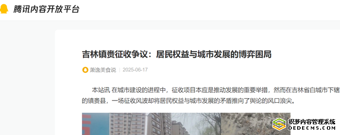 2025 年 5 月9日,多家媒体曾经以《吉林镇赉县征收项目引争议,居民权益与发展矛盾待解》为题,报道了镇赉县一征收项目引发争议事件。爱心洗车场老板张启东反映,镇赉县住建局与开发商镇赉县佳鑫房地产开发有限公司在项目推进中存在诸多违规行为。该项目在未完成净地的情况下就进行招、拍、挂流程,涉事楼盘与周边民房楼间距过近,基础挖槽距离民宅仅 3 米多,严重影响居民生活并带来安全隐患。同时,征收补偿方面,征收方补偿方式简单,对张启东洗车店营业执照年限认定存在争议,且缺乏主动协商机制,在未达成协议时开发商擅自施工,张启东多次反映问题均未得到有效解决,警方介入后也未实质性化解矛盾,使得争议不断升级。