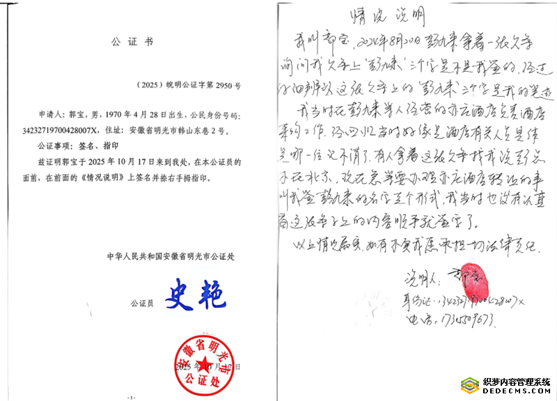 百年食府公司原法定代表人、股东郭宝提供的自己被诱骗签字的公证书证明