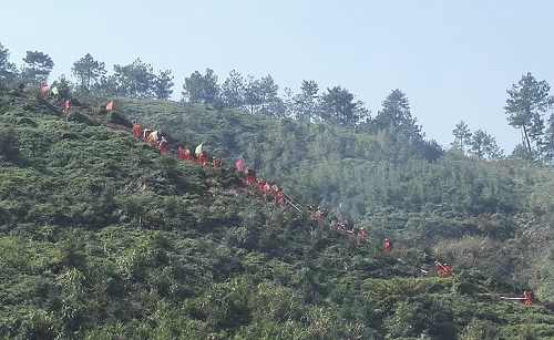 由大港头、老竹、黄村、仙渡等4支“以水灭火”消防队进行“以火灭火”演示,4支消防队各携带2台高压水泵、600米水带从取水点出发到过距离600米远 的山场,其中坡度25度以上的山坡270米,参加演练的4支队伍均取得良好成绩,其中黄村森林消防队取得第一名,仙渡森林消防队取得第二名。