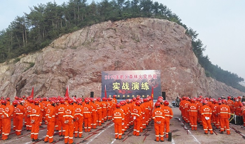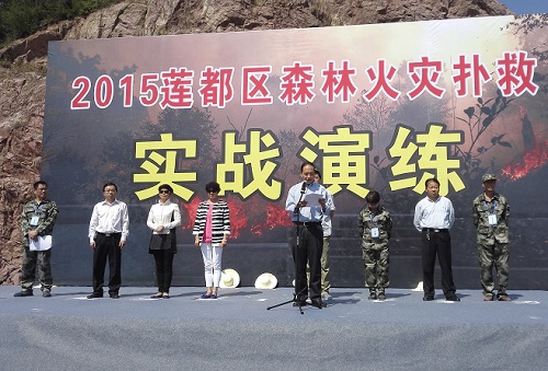 莲都区林业局陈森云局长在演练结束发表讲话:“本次培训采用理论实践相结合的方法,在进行理论知识学习的同时,通过实战演练,实践操作,让受训人员能够更 加充分地掌握森林灭火的技巧,提高应对能力。培训的主要内容主要包括:一是开展森林消防专业知识培训,主要培训了森林防火的各项规章制度、林火扑救与安全 教育问题,同时,对扑火人员进行专业技能培训。二是进行体能锻炼。主要有爬山、长跑、步行越野、负重体能测试等训练项目。三是进行扑火演练,到野外按实际 扑火要求进行扑火演练。演练内容涉及火场指挥、扑火队员按组织指挥跑位、火场安全避险等内容,达到锻炼队伍、增强实战能力的目的。”