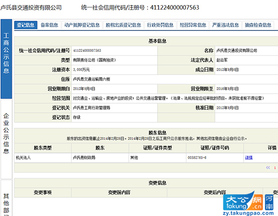 卢氏县交通投资有限公司相关情况