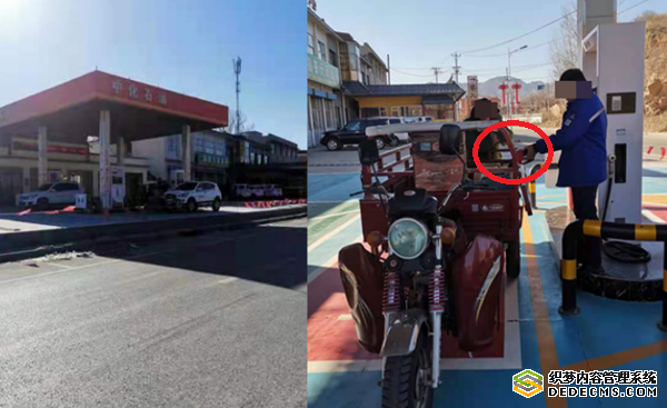 笔者在途经灵丘县上寨镇的一家名为中化石油的加油站时,看见一男子将一辆三轮车停在加油站内,加油站工作人员毫不犹豫的将标有92号汽油的油枪伸进车上塑料桶口进行加油。