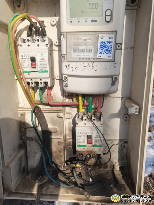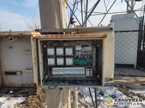 图为:基站变压器表箱无门裸露,闲置线头未做绝缘处理。