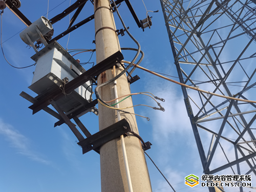 据当地村民讲:秋收时拉农作物的车辆每从此路过都小心翼翼,变压器下方摆动的裸线非常危险,极易发生触电危险。距离铁塔北侧紧邻村道旁一台10KV变压器也违规安装,下方有四根低垂,风吹裸线头左右摇摆。