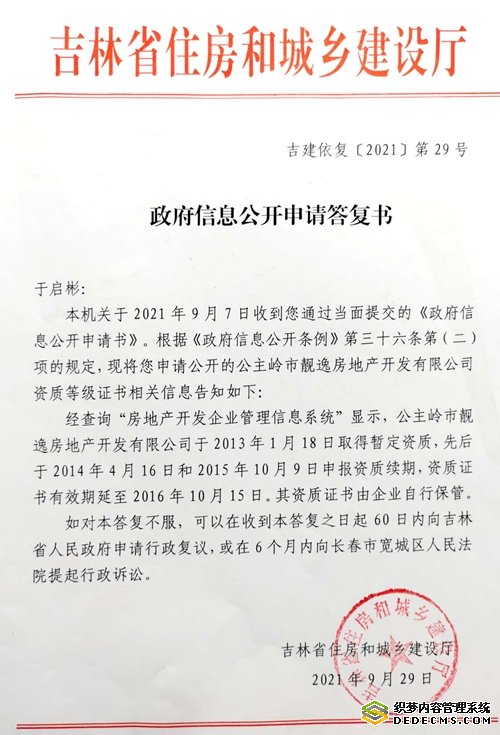 1,吉林省住房和城乡建设厅吉建依复【2021】第29号《政府信息公开申请答复书》证明张淑丽开发资质早已经过期。该文件称:经查询“房地产开发企业管理信息系统”显示,靓逸公司于2013年1月18日取得暂定资质,先后于2014年4月16日和2015年10月9日申报资质续期,资质证书有效期延至2016年10月15日。其资质证书由企业自行保管。