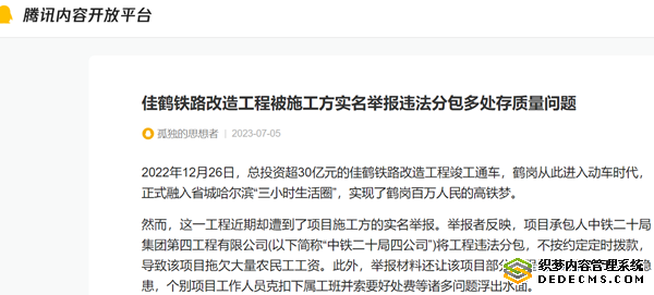 此外,杨永余等人还反映了李学平等项目工作人员克扣下属工班并索要好处费等诸多问题。记者了解到,此前,杨永余等人已将举报材料递交给中铁二十局集团及佳木斯市铁路指挥部。但目前还没有收到反馈信息。