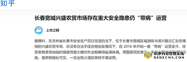据爆料,在吉林省长春市安全生产百日攻坚的当下,位于长春市宽城区福源街与湖兴路交汇处东南侧的兴盛农贸市场,在没有合法手续合格验收情况下,自 2016 年开始一直“带病”运营至今,经营者租赁场地临时搭建简易大棚对外出租赚得盆满钵满。周围居民则表示,由于大棚内没有消防设施,易燃物随处可见,一旦出现火情后果将不堪设想。