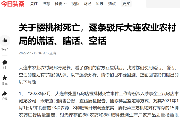 大连市农业农村局邢芳局长,看了你们的官方回应以后,我对你们使用谎话、瞎话、空话的能力有了新的认识。以下逐条分析,请你们也不要回避,正面回答我们提出的以下问题: