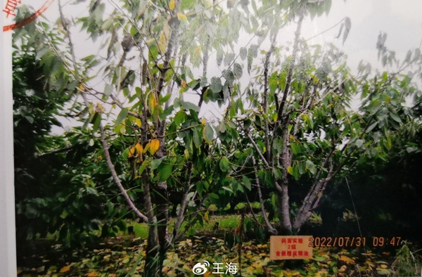 7、2022年7月,农户于可伟按照2021年实际用药情况进行了还原对照实验,结果是使用了橙皮精油的一组樱桃树黄叶落叶严重(落叶率90.44%),而没有橙皮精油的一组树叶浓绿,正常生长。该过程了委托鞍山绿洲林木果业鉴定有限公司鉴定进行鉴定,且有农药经销商签字,大连金普新区进行公证,请问为什么不重视、不认可?