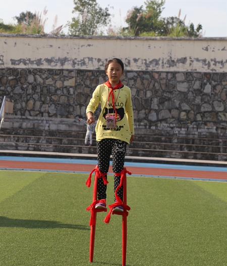 女学生也踩上了高跷