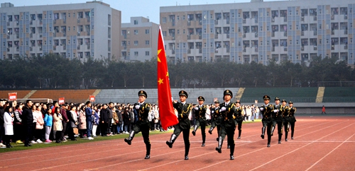 升旗仪式后,优秀学生代表——管理学院2013级应用心理学的王雪雯,在国旗下进行了发言。王雪雯同学在今年的考研大军中以总分411分、英语81分的好成绩脱颖而出。她结合自己的亲身经历与同学们分享了她的考研心得。首先,她讲到考研要立足实际、明确目标,只有明确了恰当的目标,并一以贯之地付诸实践才能实现它。其次,她还提到考研贵在“坚持”,无数次彷徨和挣扎也曾让她怀疑和想放弃,但她都咬牙坚持了过来。最后,她还告诫学弟学妹们“临渊羡鱼,不如退而结网”,不要盲目仰慕那些“学霸”,只要脚踏实地,每个人都能成功。
