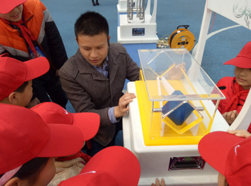 专家进教室对学生开展科普知识讲座,组织学生观看展板,实际动手操作。孩子们在班主任老师的组织下,在小志愿者的讲解下,有序地参观了实体科普物体:静电乒乓、椎体上滚、声驻波、圆筒看动画、天鹅绒触觉、雅各布天梯、最速降线等展台。孩子们戴上三维立体眼镜,看到了一只只活灵活现的动物,博得他们一阵阵惊呼。通过实践操作使他们知道了动画片的制作原理,见证了科技的无穷魅力。