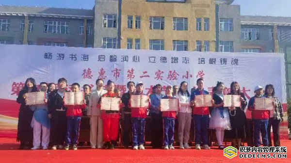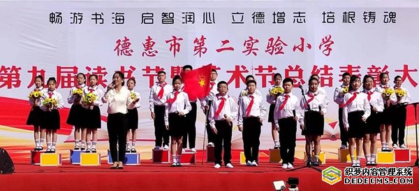 大会在升旗仪式中拉开序幕,鲜艳的五星红旗缓缓升起,嘹亮的国歌在校园上空久久回荡。会上,德惠市第二实验小学校长王明龙致辞,对积极参与读书节活动的师生和家长表示感谢,回顾了过去学校开展“小学生课外阅读指导的研究”所取得的丰硕成果,并希望全体师生继续保持热爱阅读的好习惯,不断在阅读中提升核心素质,为创建书香校园增光添彩。随后,校领导为获得优秀作业设计奖、优秀作业组织奖、诗词大赛奖、书香少年、书香家庭、读书节展演获奖节目颁奖。颁奖后,各个年级献上优秀的节目表演。