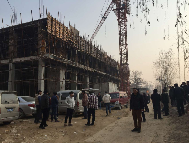 正当朱某与本刊工作人员吐苦时,接到电话,称另外一拨要工资的工人去围堵杞县县政府去了,要其赶紧过去。朱某慌慌张张的给本刊说。现在工人给我逼的也没办法,我得赶紧过去,要不控制不住场面怕出意外。只有见了领导看能不能协调协调赶紧解决,实在不行只有走司法程序了。