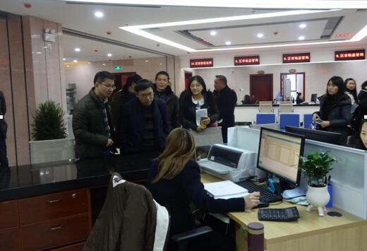 图为:省地税局和贵州省残联等一行在碧江地税大厅残保金征收窗口调研现场