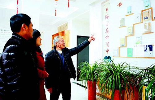 中国谜歌大王赵兴寿为客人介绍“家庭传习基地”