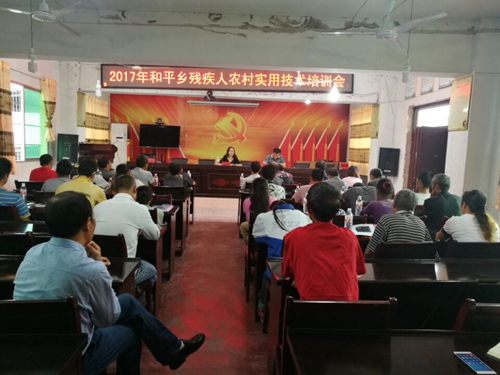 碧江区残联理事长胡敬到和平乡指导农村残疾人实用技术培训,并勉励残疾人自强自立