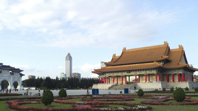 台北的自由广场,原本以为非常大,结果一看,连天安门广场的十分之一都不到,太小了,自由广场的总统府也可以随便进,游人可以随意地拍照游玩,没有人来干涉,只是有一幢办公楼,只能去到隔着一条街的地方,有红线,一过去,就有人吹哨子,提醒你不要过街(但没有警察过来)。
