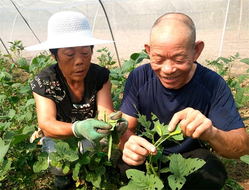 2018年,山东省郯城县马头镇胜利街村民刘建喜一次偶然的机会,了解到临边的江苏省连云港市灌云县豆虫已成产业,不仅成为美味佳肴,而且经济效益可观产品供不应求。养殖豆虫就是‘金元宝’,刘建喜老汉的想法得到老伴的支持,便开始实施了自己的方案。他三番五次到实地考察,主动参加养殖技术培训,逐步掌握了豆虫的养殖技术,每年二亩塑料大棚全部种植了豆虫。豆虫只吃叶子不吃豆,每亩黄豆还会不错的收成,年纯收入在五六千元上。老两口专门养“害虫”,闯出了一条别致的“养殖+种植”新路子。(高军 摄影)