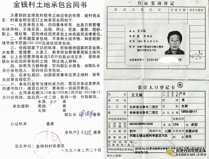 王义斌家住长春市宽城区兴隆山镇金钱村李家店屯六队,他向媒体介绍:他是71年在122中上的初中,因家中生活困难提前辍学,72年到金钱村六队干活,一直到1979年生产队成立铁匠炉时,六队把他和李如刚、李学军调到铁匠炉打铁。1980年的一天,李如刚家中有事请一天假,因打铁少一人,队长张志忠就把徐现有派来顶替,但因徐现有打铁不熟练,把大锤打偏,当时就把王义斌的眼睛崩坏了,医院医生诊断为左眼眶断裂性骨折眼球突出,眼眶眼底充血,眼仁扩散,必须住院治疗。在医院住了20多天见有好转后,他就出院回家自养,因为他有伤不能干活,生产队开会决定每年给他补助600工分。当时六队的工分不值钱,1分工才核8分钱,600工分只核48元,连一口人的口粮都不够。因此,他找到六队,队长张志忠召集班子开会研究,决定对他给与特殊照顾:王义斌可以自己到外边找活干挣钱补充家用,其出外打工(是指到市里找零活干),生产队算王义斌是队里派出务工人员,口粮交钱照发。当时农村生产队的社员是不准个人到市里找活干的,如果自己找活干,不参加队里干活是不发口粮的,生产队让他自己找活干还给发口粮,按生产队派工出,王义斌感激万分,他万万没有想到却因此在1983年第一次土地承包到户时没有分到土地,也就没有土地承包合同。他的父亲王化远也在1983年第一次分地时没有分到土地。