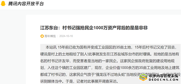 本站讯 15年前已收为国有并变成工业园区的35亩土地,15年后村书记又抢了回去,硬说是村上的土地租给了别人!此事就发生在江苏盐城东台市的时堰镇。抢地的是当地有名的村书记许友华,而受害者是当地的一家民企。这家民企按政府批复的建设用地规划,入住这个镇的工业园区建厂,现在,企业价值1000余万的35亩工业用地及地上建筑都成了村书记的,这家民企气愤于“强龙压不过地头蛇”当地投资环境的同时,也将此事投诉到媒体当中。于是,记者对此事展开调查采访。