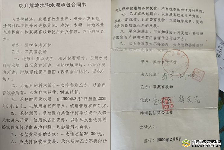 根据双方签订的《废弃荒地水沟水塘承包合同书》和佳木斯市中级法院(2020)黑08民终272号民事判决书记载,赵英范老人脚下这片土地,往昔是大片的荒地、荒沟。2000年2月5日,赵英范与赵英奎以双英畜牧场的名义,和桦南县梨树乡清河村签订了这份承包合同。合同约定,为繁荣经济、发展畜牧业、引资开发“五荒”,清河村将坝外河边的撂荒地、水沟、水塘、树地等,承包给桦南个体双英畜牧场开发管理,承包期从2000年3月1日至2025年3月1日,承包费一次性交清,共计35000元。合同还规定,乙方(被告)要以发展畜牧业为主,形成规模、引进良种,带动全乡畜牧业发展。土地位置在清河村西坝外,东起水闸门排大壕,西至窝肯河,南起树地南边,北至八虎力河。合同签订后,赵英范与赵英奎依约在这片土地上养殖牛、羊、大鹅等,经营畜牧业。2001年,赵英奎退出,此后由赵英范独自经营。从2006年起,赵英范停止畜牧生产,将合同范围内的土地陆续开垦成稻田,一部分自己耕种,一部分对外发包,如今已全部转包给他人。