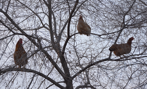 内蒙古扎兰屯:鸡在大树上“搭床” 睡觉