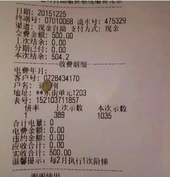 用 户至今不明白,临猗供电局发了催交电费通知后,自己马上就到营业点交了费,按说这是一查就清楚的事,为何又出现二次催费的事,更可气的是,同样的电费,为 何只能往代收人员手上交,这里面难道啥猫腻不成?况且电费已经交过,供电局咋就这般的任性,想停电就停电,这“电老虎”的作风啥时才能改改?