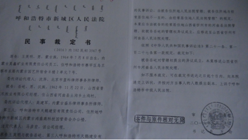 王英明急忙提起了诉前财产保全。新城区法院(2016)内0102财宝123号”民事裁定书下达后,全部冻结了即将变更到我名下的的呼市金谷农商银行股权。王英明又向呼市新城区法院提起股权转让纠纷案,诉请代我垫付了合作期间购买公司转让的股权款810余万元。本来是二人公司,经清算退股一年后,又发生其垫付巨额资金,不但无证据且根本不合常理。特别是如果该理由能成立,其何不首次在呼市中院的诉讼中提起此理由的反诉?我依法提起管辖权异议的诉求,很快收到了新城区法院管辖权异议成立的裁定书。王英明一看案件要移交异地办理便傻了眼(因为案件移交意味着他的关系网将失去效用)。于是,王英明又赶快向呼市中院提起上诉,呼市中院在未开庭、未听证、未质证的情况下,为争管辖权竟然直接改变案由(一审案由股权转让纠纷,二审案由民间借贷纠纷),指定该案由呼市赛罕区法院审理。关键时刻,呼市中院又满足了王英明的意愿。