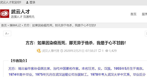 字字深情,句句真切。“如果因染疫而死,那无异于“他杀”,我是于心不甘的!”这该是多少武汉人的想法?!