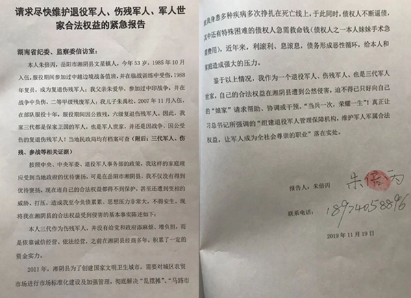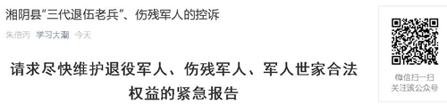 湘阴县“三代退伍老兵”、伤残军人的控诉