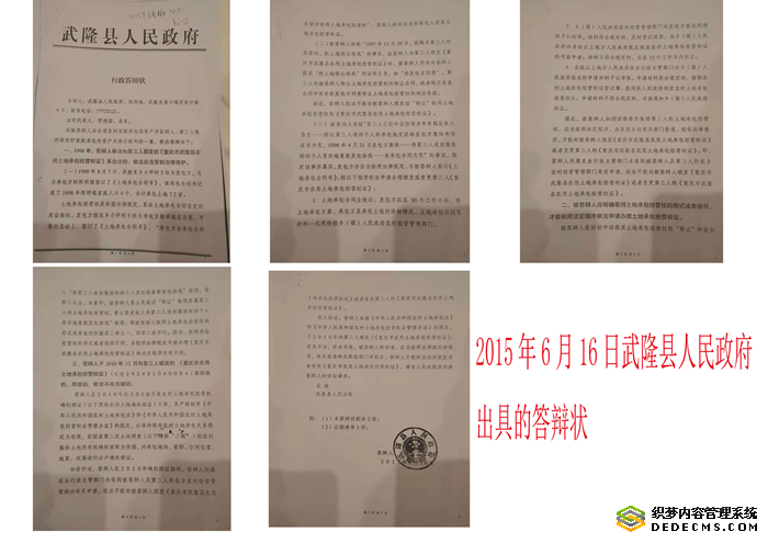 2015年6月16日,武隆县政府行政答辩状上明确认定:1、1998年,答辩人依法向第三人颁发的《重庆市武隆县农用土地承包经营权证》系合法,依法应当受到法律保护;2、答辩人于2010年12月向第三人颁发的《重庆市农用土地承包经营权证》(CQ292401060084)系合法的,有效的,依法不应当撤销。