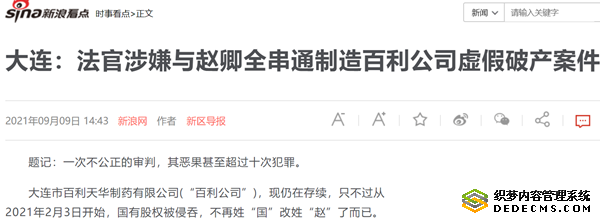 自2019年开始,在辽宁省大连市中级人民法院(“大连中院”)主导下,经过大刀阔斧的变革,百利公司破产重整,全新的思路,成功的试点,媒体盛赞以任延光、曲强、高明伟为代表的大连中院主动干事、担当作为的基础上,在深度博取了吃瓜群众的眼球后,百利公司原总经理赵卿全涉嫌十一宗犯罪并与大连中院院长、法官恶意串通将国企参股的百利公司虚假破产、侵吞国有资产数亿元的恶劣行径,也渐渐浮出水面。