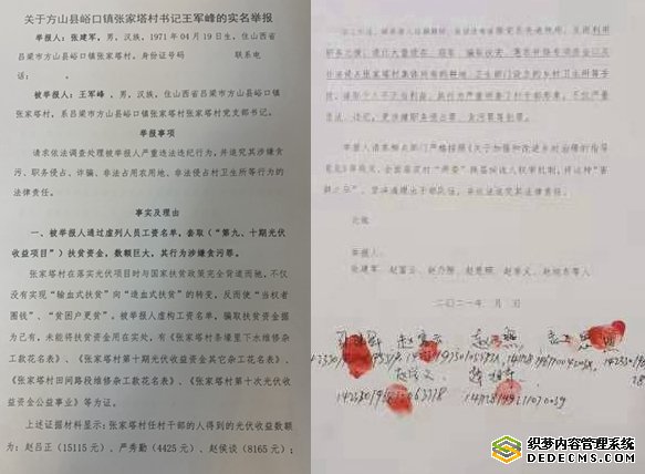 关于方山县峪口镇张家塔村书记王军峰的实名举报