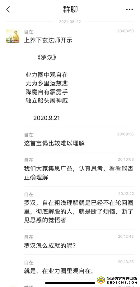 就是很有水平、很有文化的包装来包装养玄法师。群里的学习内容是学习他的偈子。这么多年,他们把他包装成开悟的阿罗汉、大圣贤人,是逐渐包装,就是很有文化的那种,让人不知不觉被忽悠进去了。