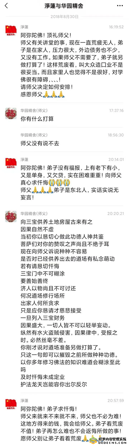几张图片是他在东北哈尔滨阿城区华园精舍时拍的,后来华园精舍被我们举报后,当地宗教局就把这个华园精舍给取缔了。但当地宗教局里有个他的“护法”提前给他通信儿了,他就提前跑掉了。