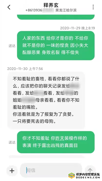 【养玄】与对方的截屏以及聊天记录,我同样保存收藏,现在当然不能展示给法师说明。包括收集对方的语音记录都是他们触犯法律的依据。
