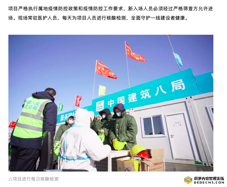 根据中建八局官方公众号发布的信息,此次项目每天都在进行核酸检测。