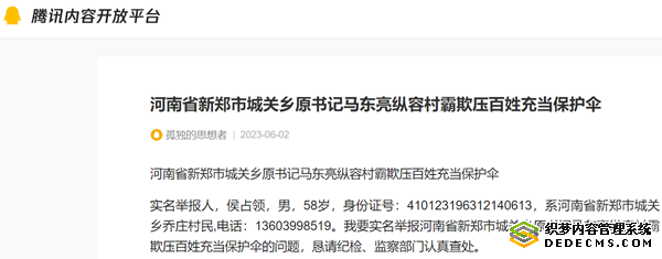 河南省新郑市城关乡原书记马东亮纵容村霸欺压百姓充当保护伞