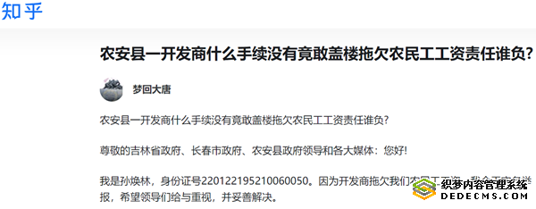 农安县一开发商什么手续没有竟敢盖楼拖欠农民工工资责任谁负?