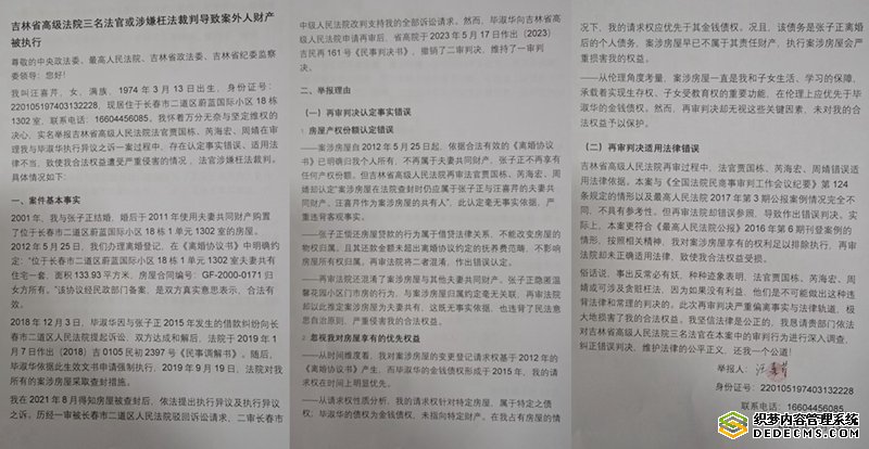 吉林省高级法院三名法官或涉嫌枉法裁判导致案外人财产被执行