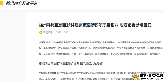 文中所述问题均为实名举报人所举报,对其实名举报问题本文只是如实引述,其观点并不代表媒体和作者的观点。媒体在此希望,实名举报人的举报能够引起福州市、福建省乃至中央纪委、监察委的高度重视,并派出得力人员认真调查举报的问题,如其举报问题属实,就依法依规严肃处理。对于事件后续进展,媒体有待进一步关注。(本站编辑)