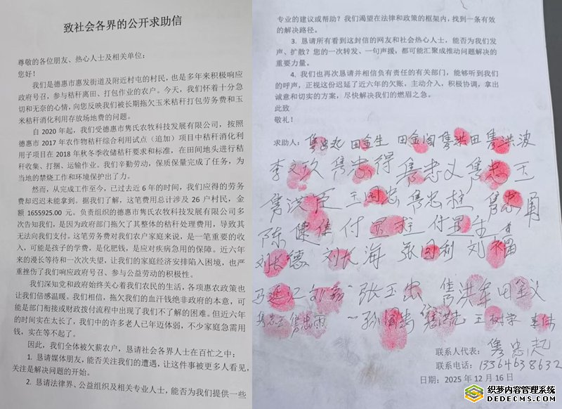 秸秆处理劳务费拖欠六年不给,德惠26个农户向社会各界的公开求助