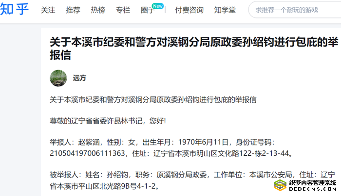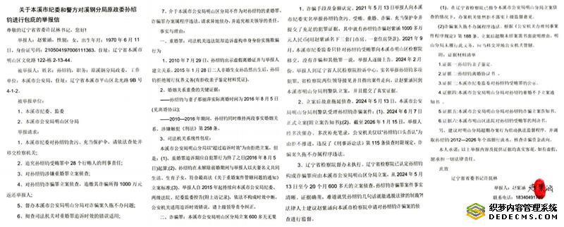 关于本溪市纪委和警方对溪钢分局原政委孙绍钧进行包庇的举报信