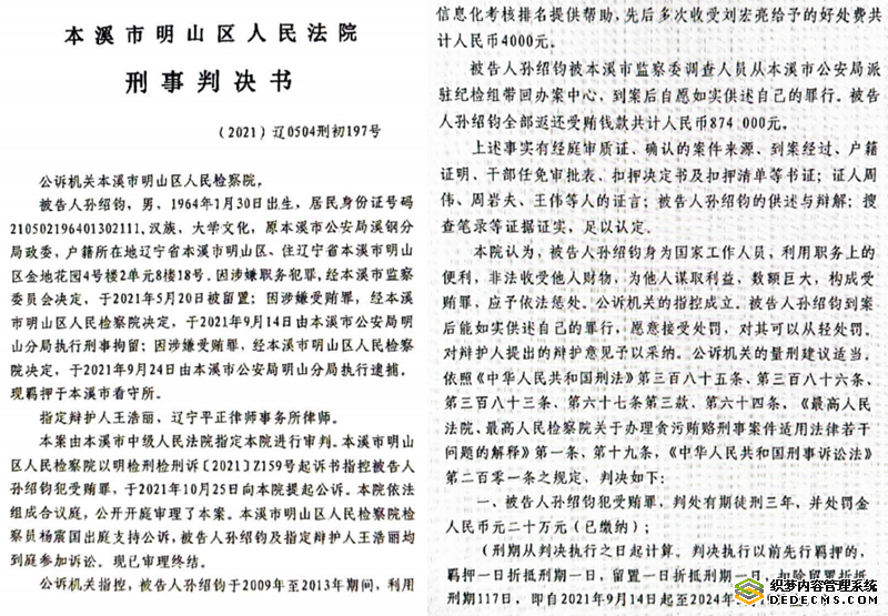 3.证据三:本溪市纪委监委对孙绍钧受贿罪的公示。