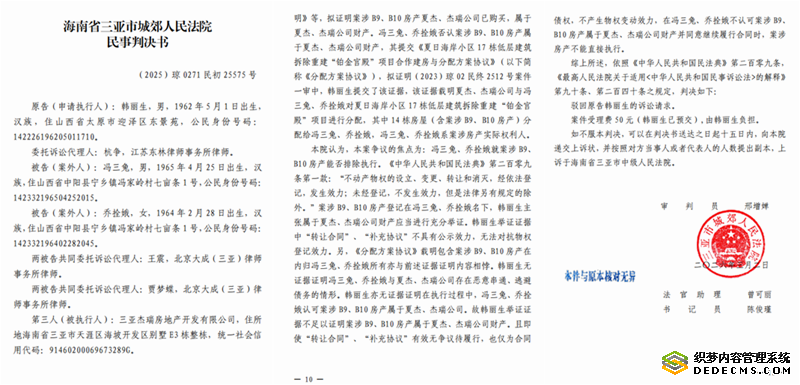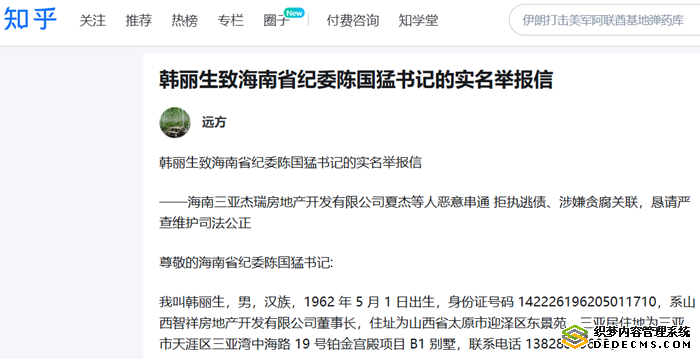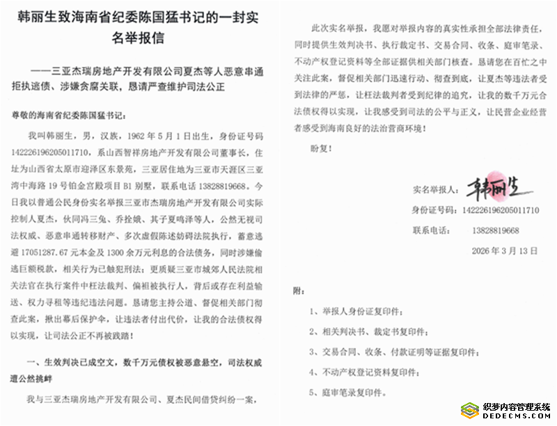海南三亚数千万元债权遭悬空?韩丽生实名举报夏杰等人恶意逃债
