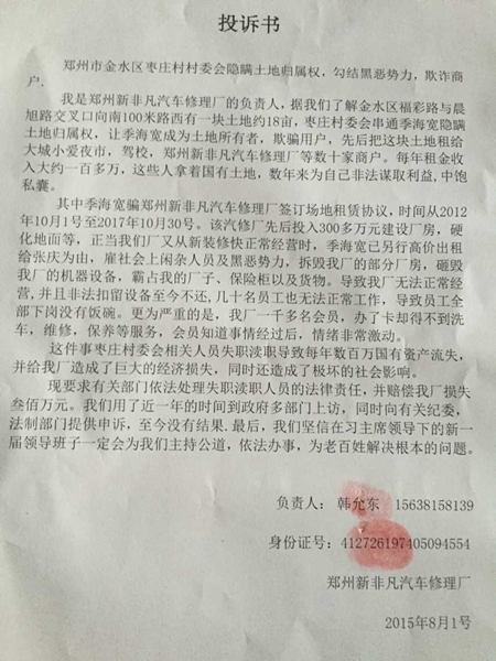 村主任:这是上届村主任签的与我无关,具体我也不太清楚。